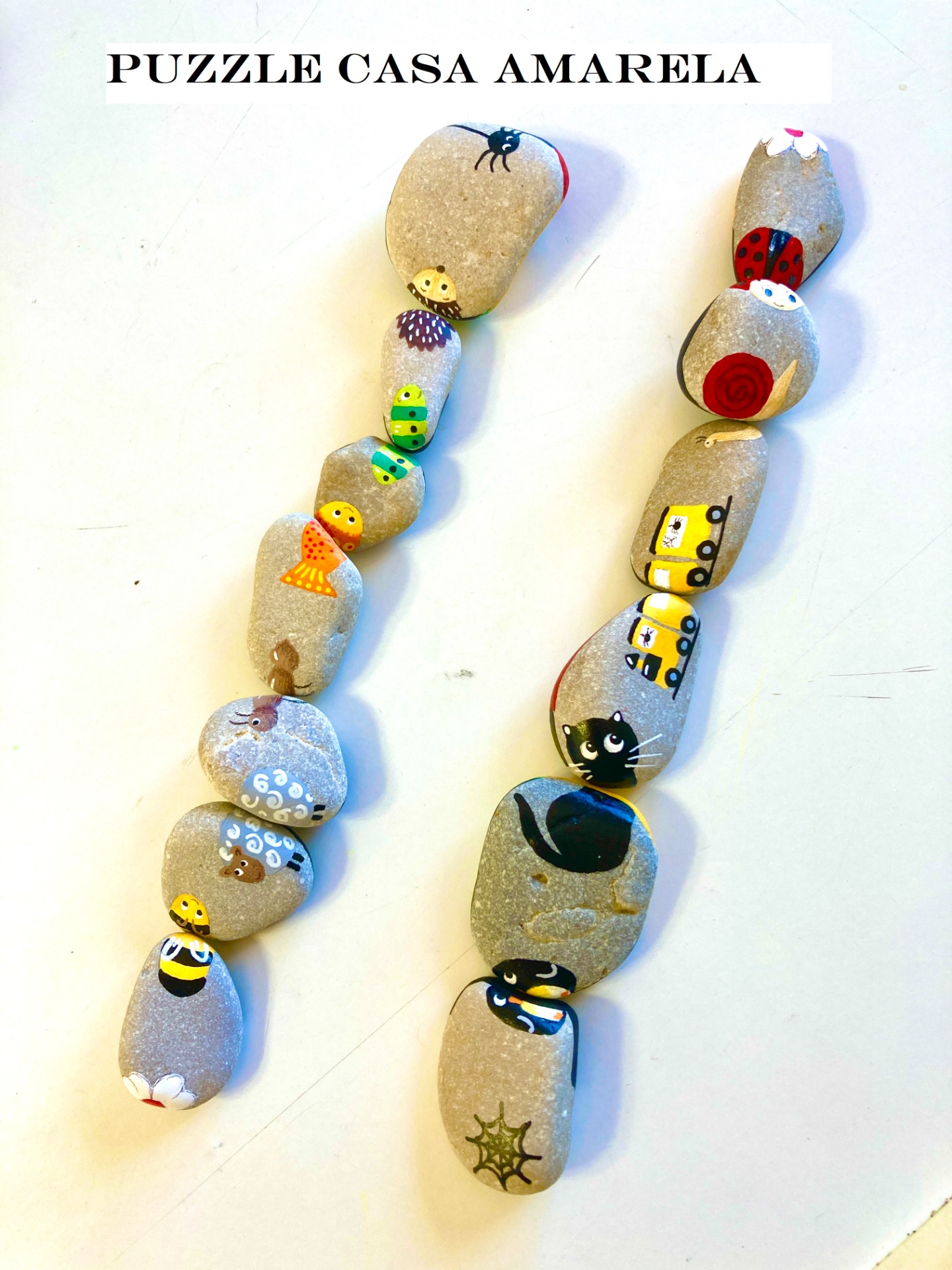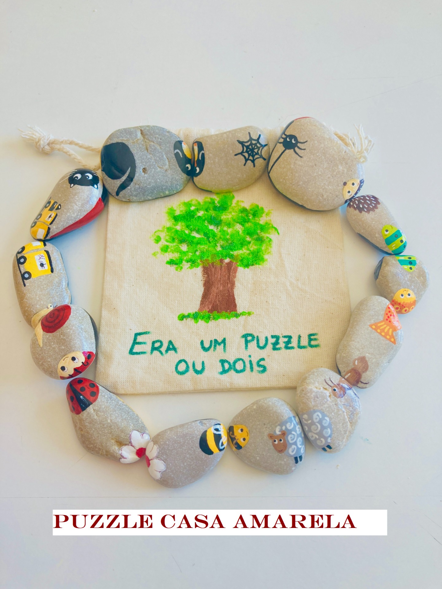 Jogo de puzzle duplo. Puzzle de imagem de um lado e puzzle dominó do outro.
