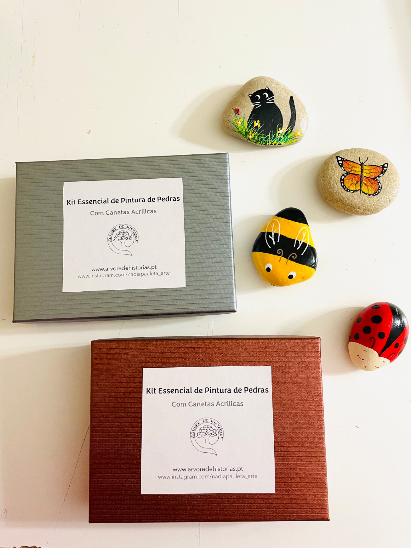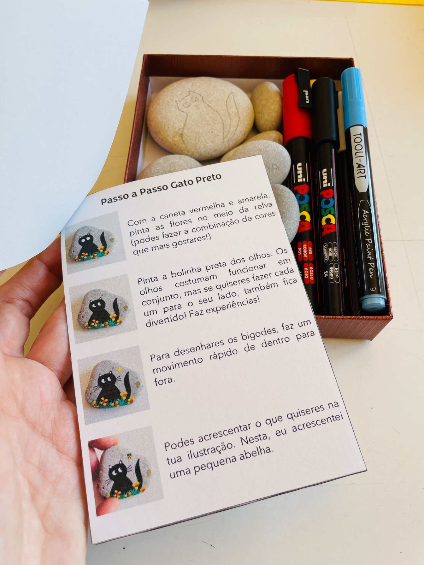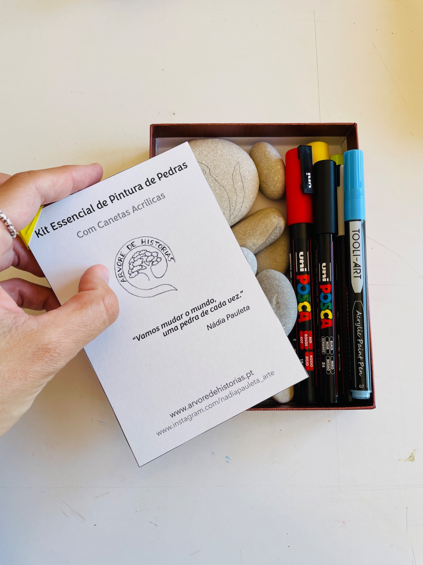 Kit de pintura de pedras com canetas acrílicas. Este kit inclui: