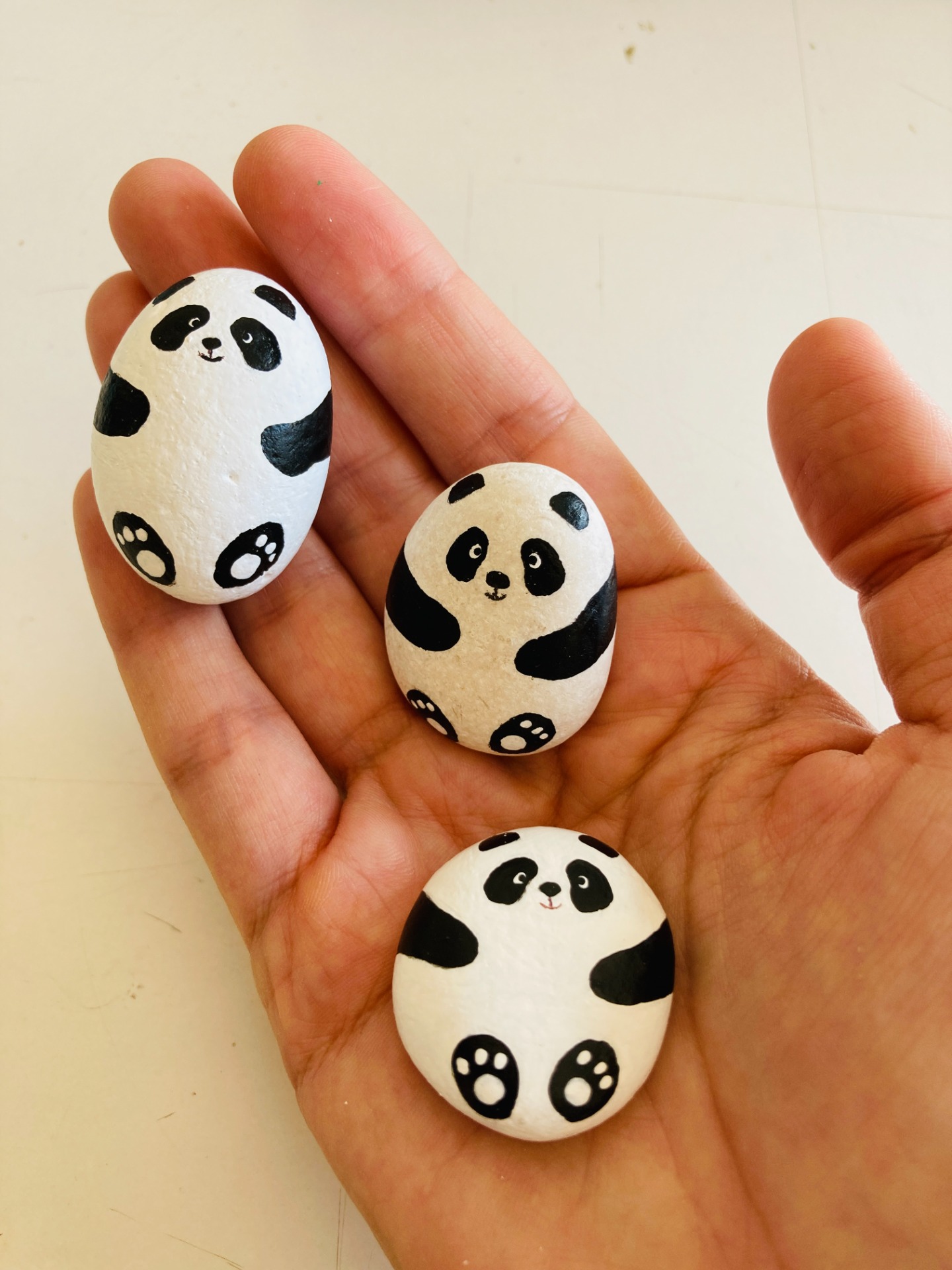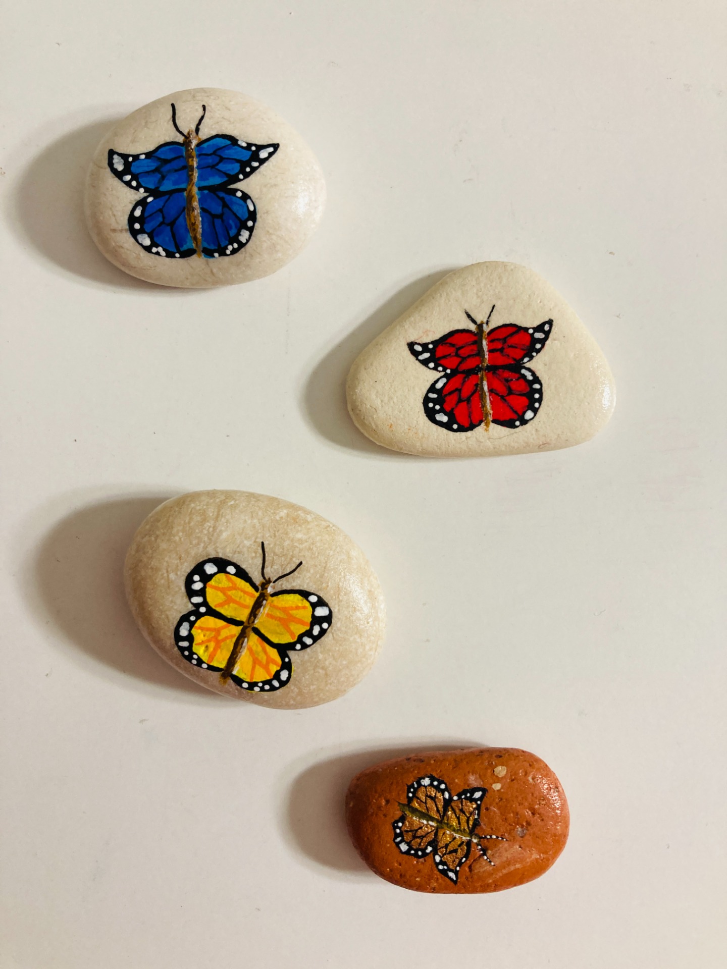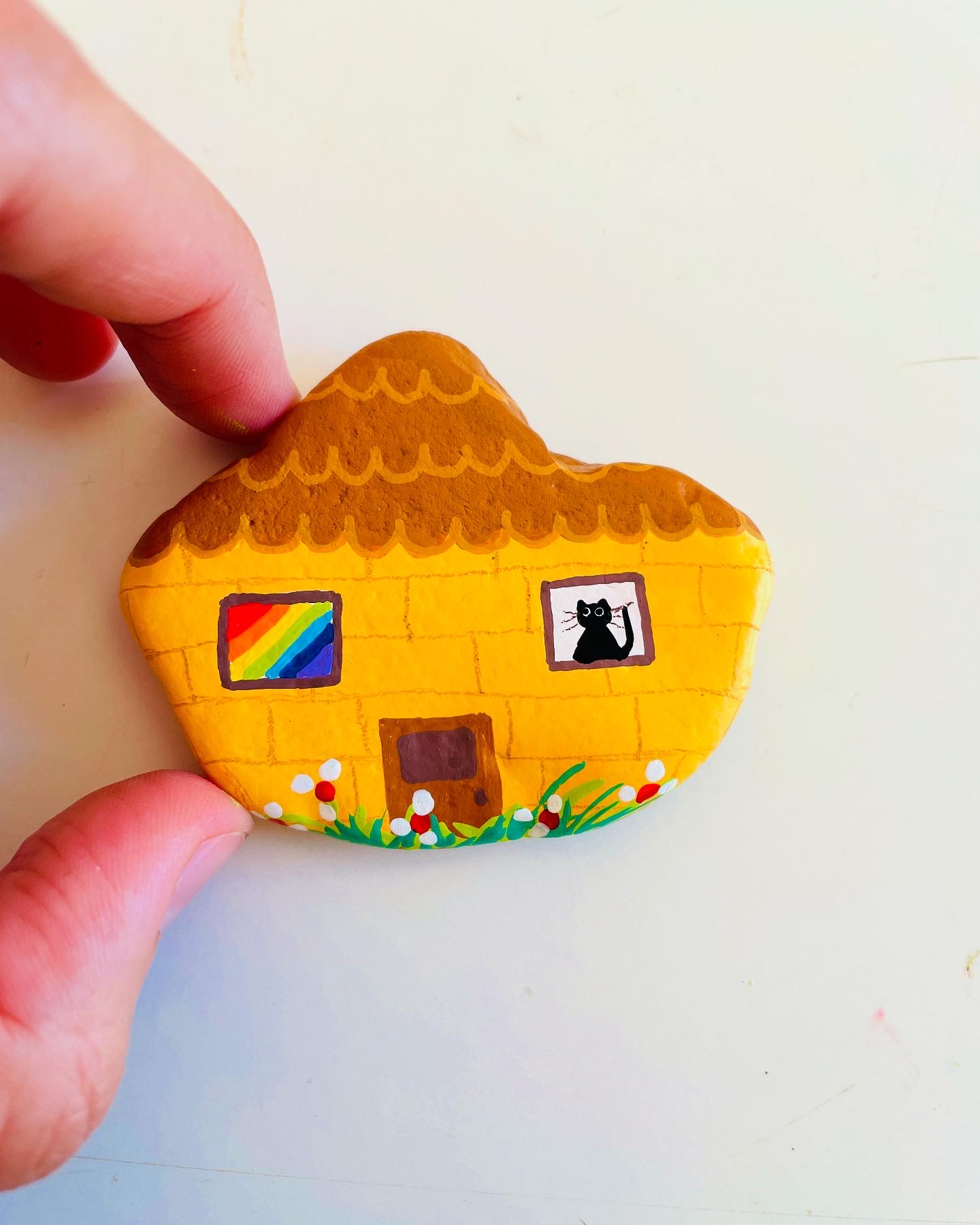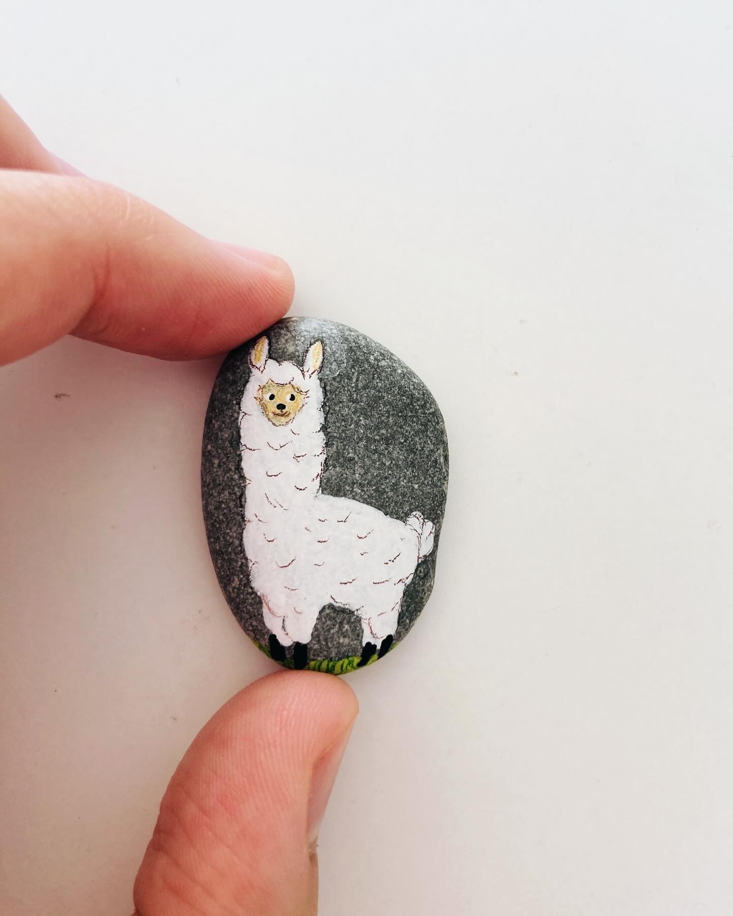 Pedras pintadas à mão com tinta acrílica. O tamanho das pedras varia entre 1 cm e 3 cm de comprimento. Podem ser utilizadas como extra para o jogo Era uma Vez.