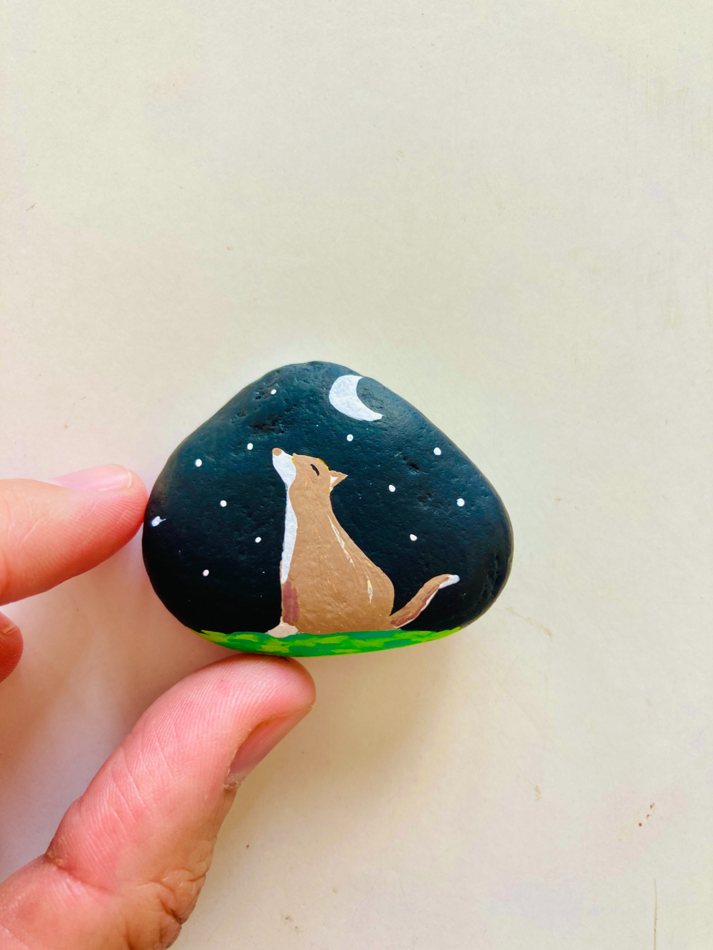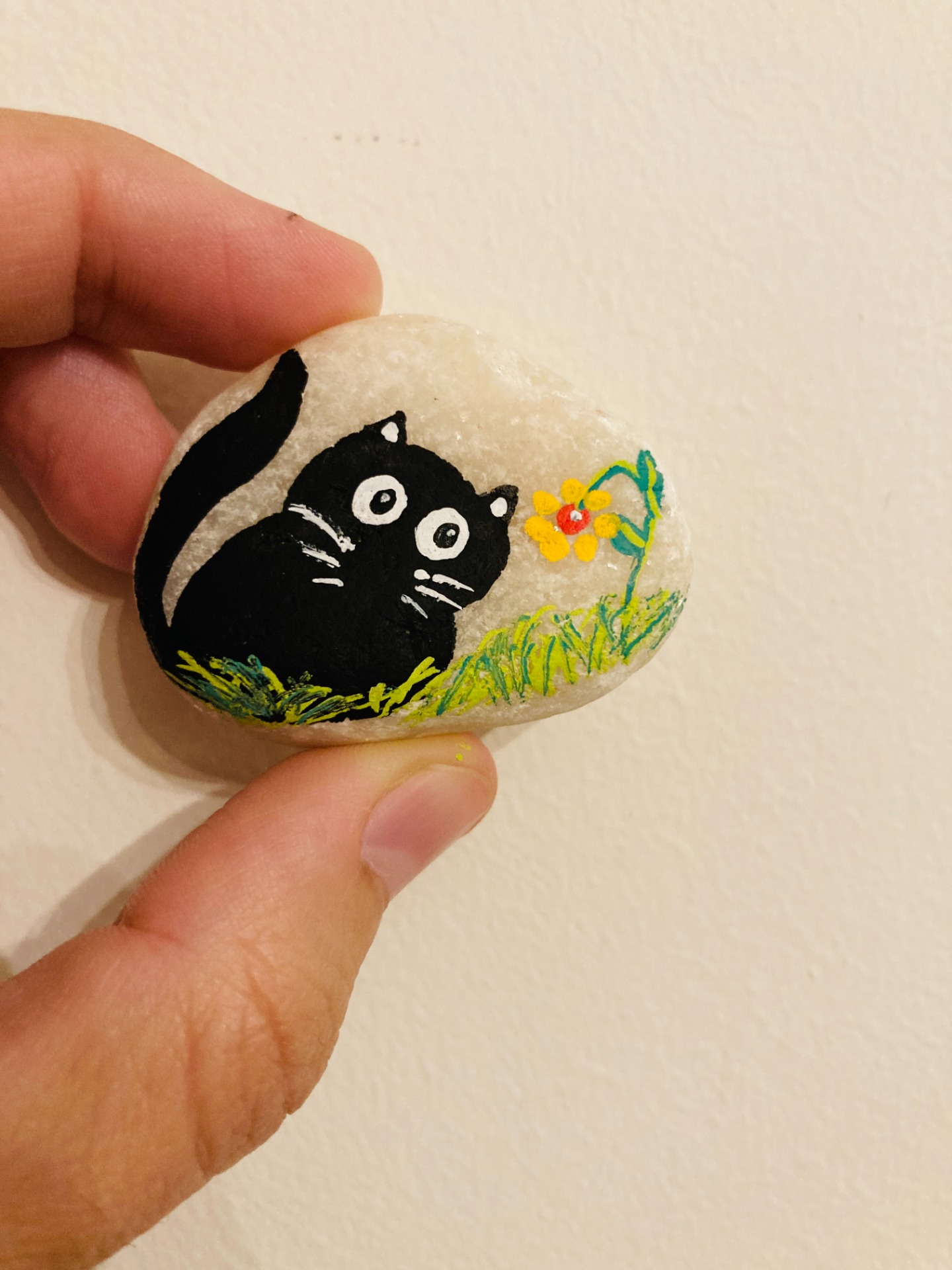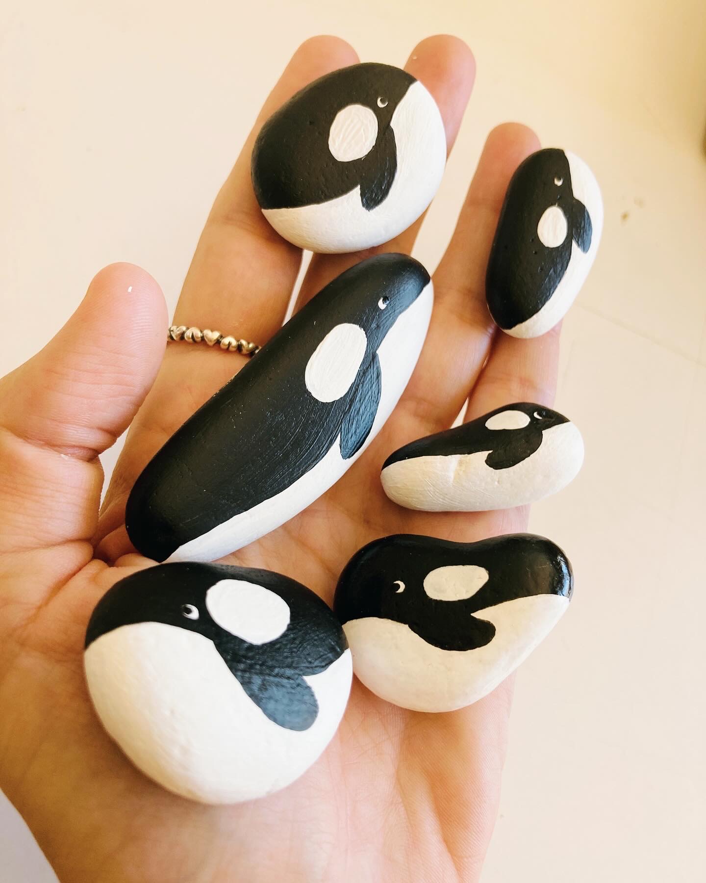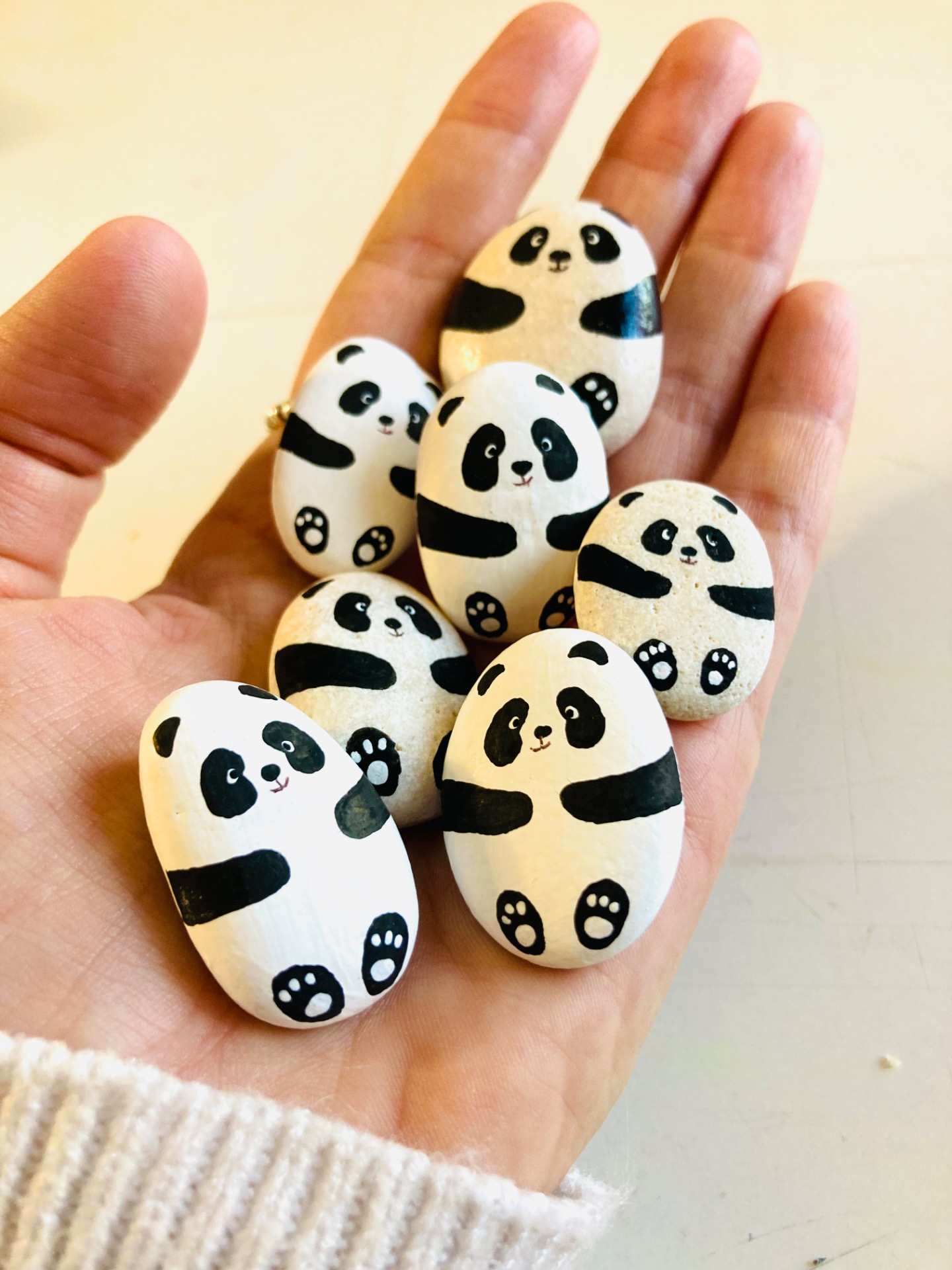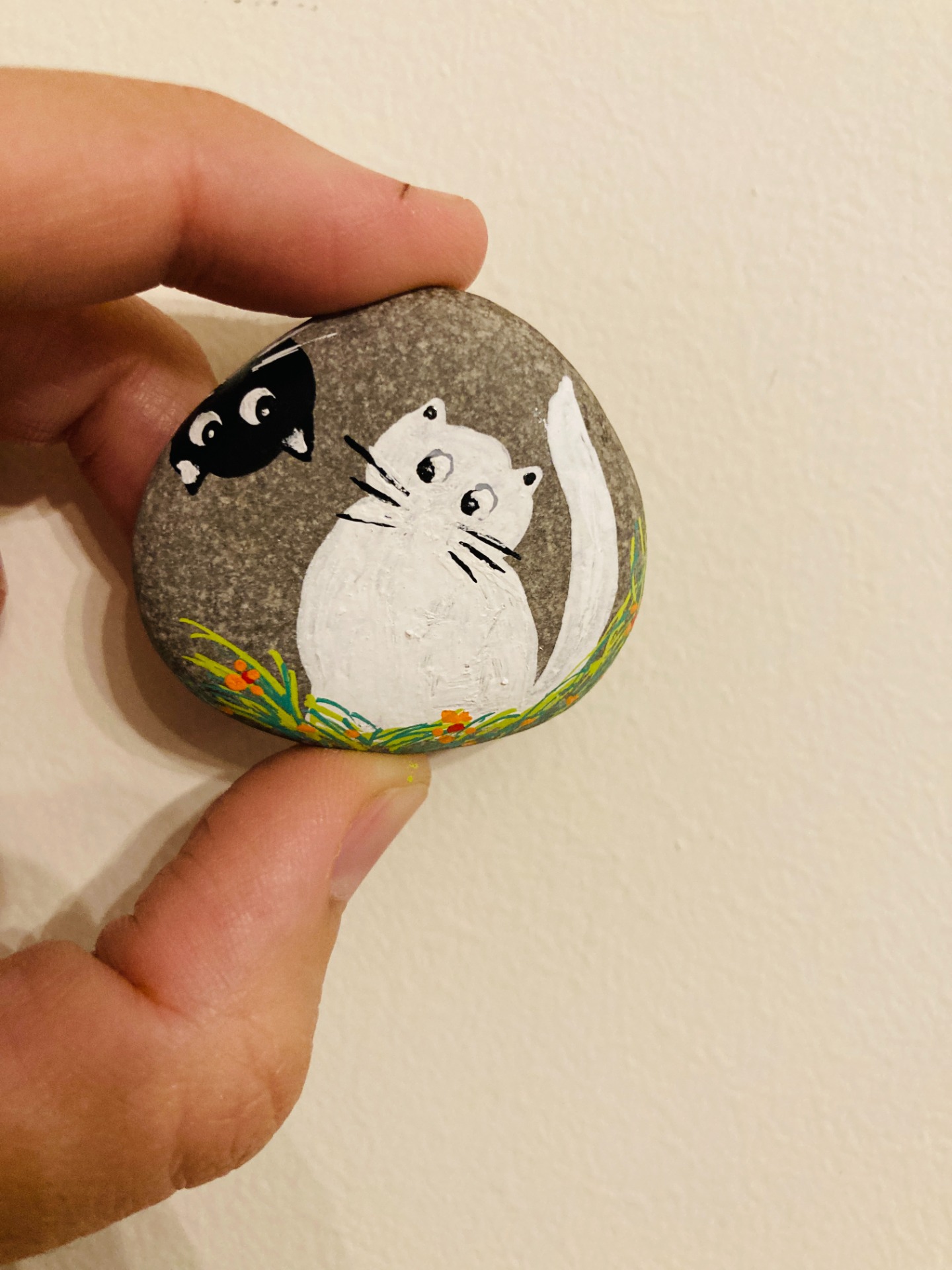 Pedras pintadas à mão com tinta acrílica. O tamanho das pedras varia entre 1 cm e 3 cm de comprimento. Podem ser utilizadas como extra para o jogo Era uma Vez.