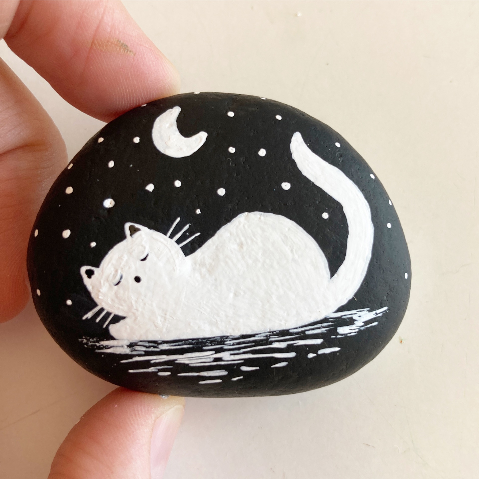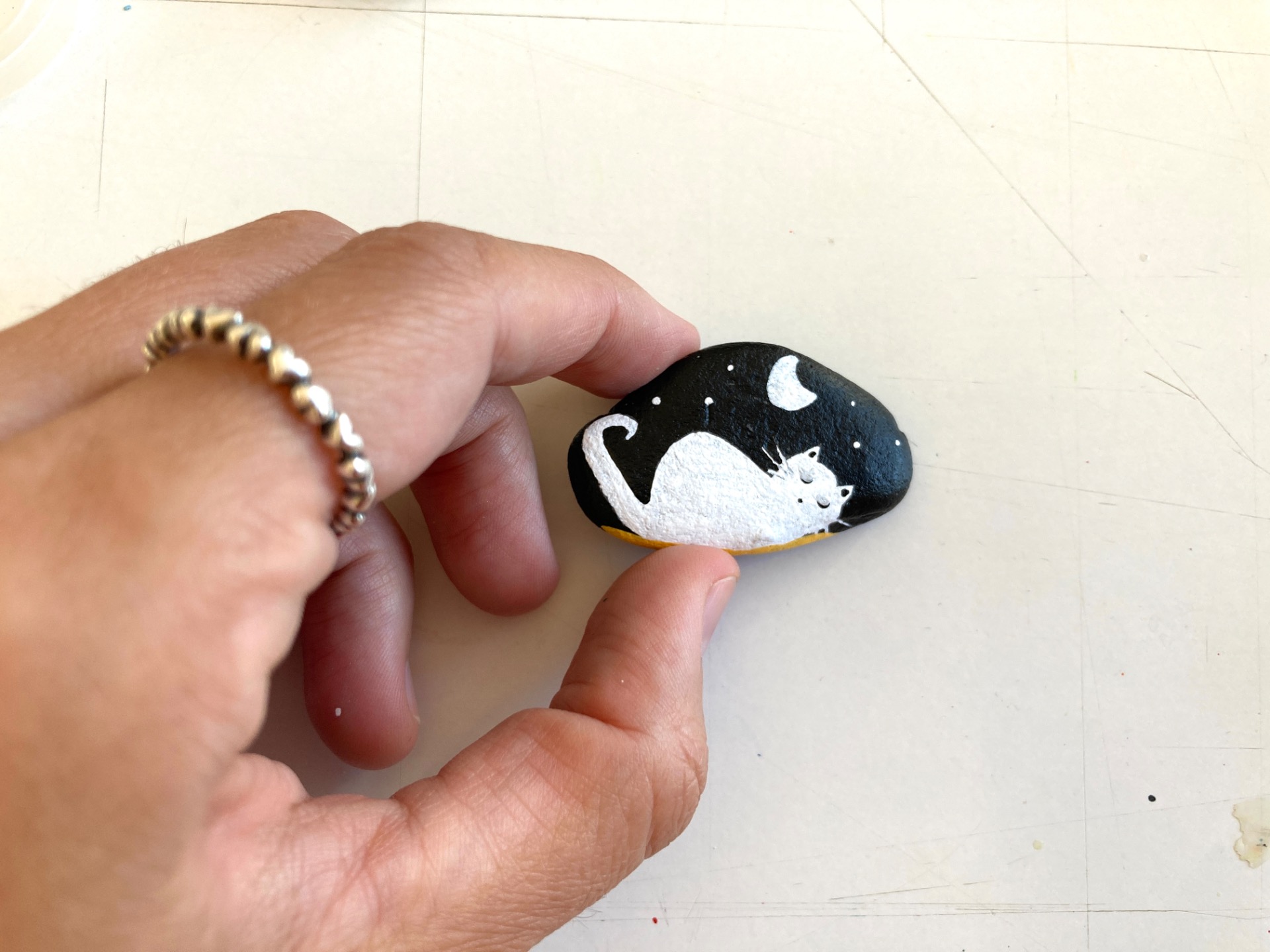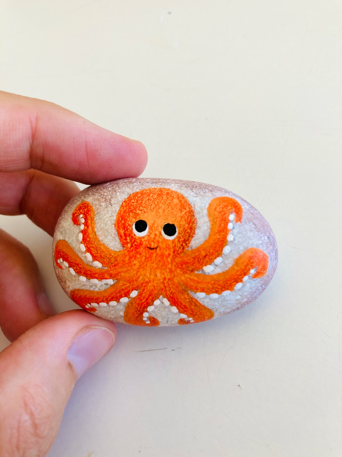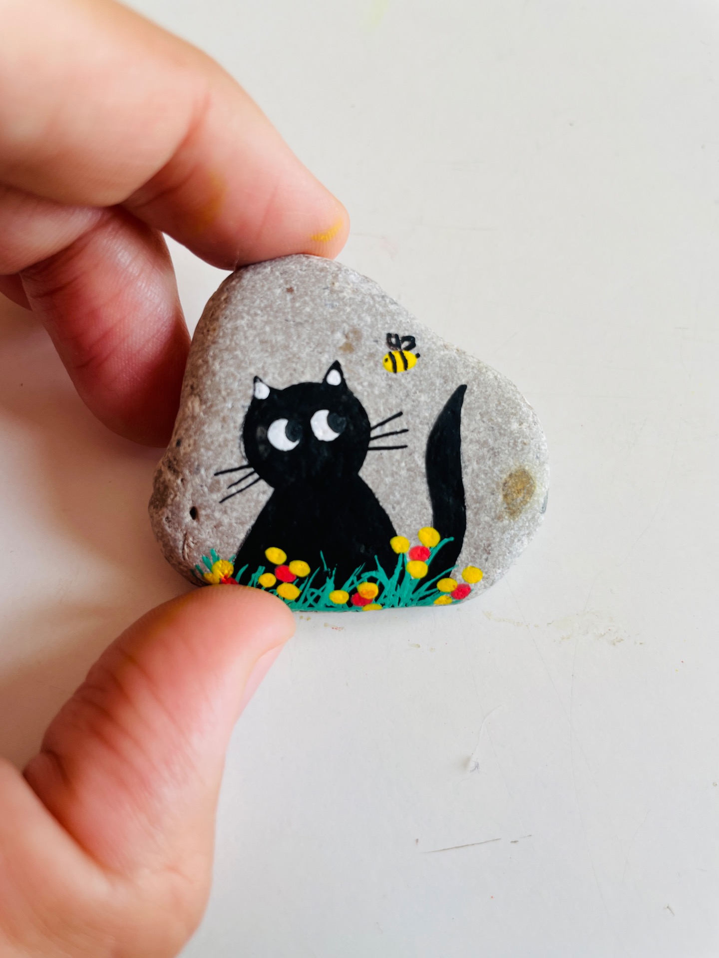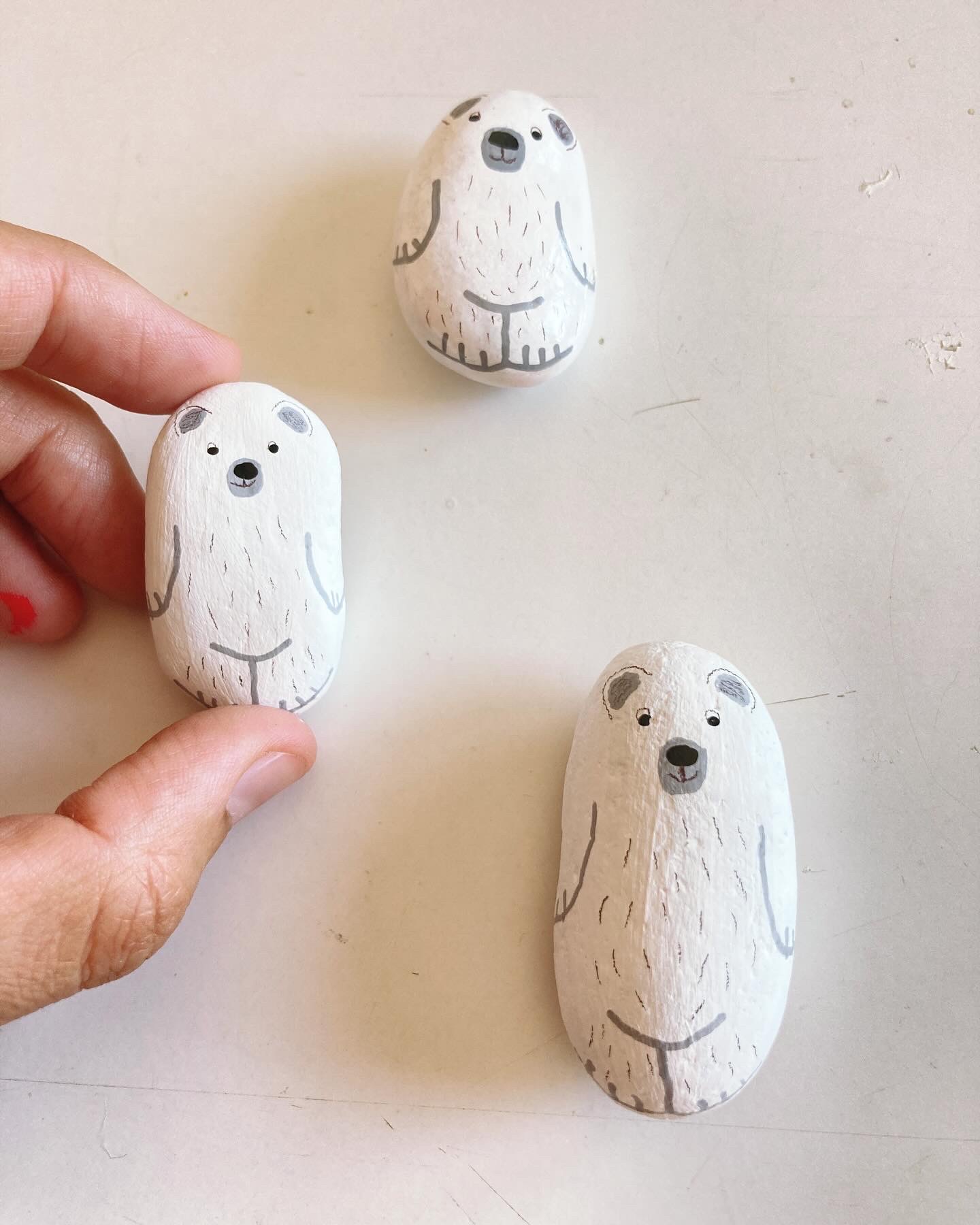 Pedras pintadas à mão com tinta acrílica, envernizadas. O tamanho das pedras varia entre 1 cm e 3 cm de comprimento. Podem ser utilizadas como extra para o jogo Era uma Vez.